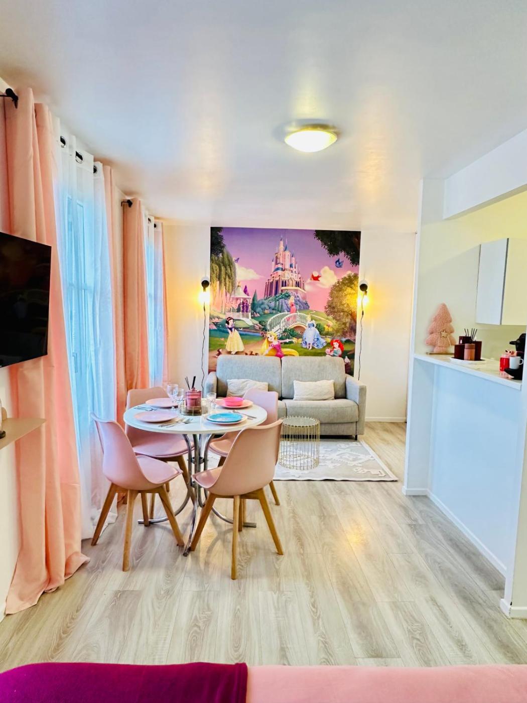 Situated 4.5 km from Val dEurope RER Station, Le petit Royaume des princesses 14 min Disneyland features accommodation with free WiFi and free private parking. The property is located 37 km from Paris-Gare-de-Lyon, 38 km from Opéra Bastille and 38 km from Pompidou Centre. The property is non-smoking and is5.3 km from Disneyland Paris.