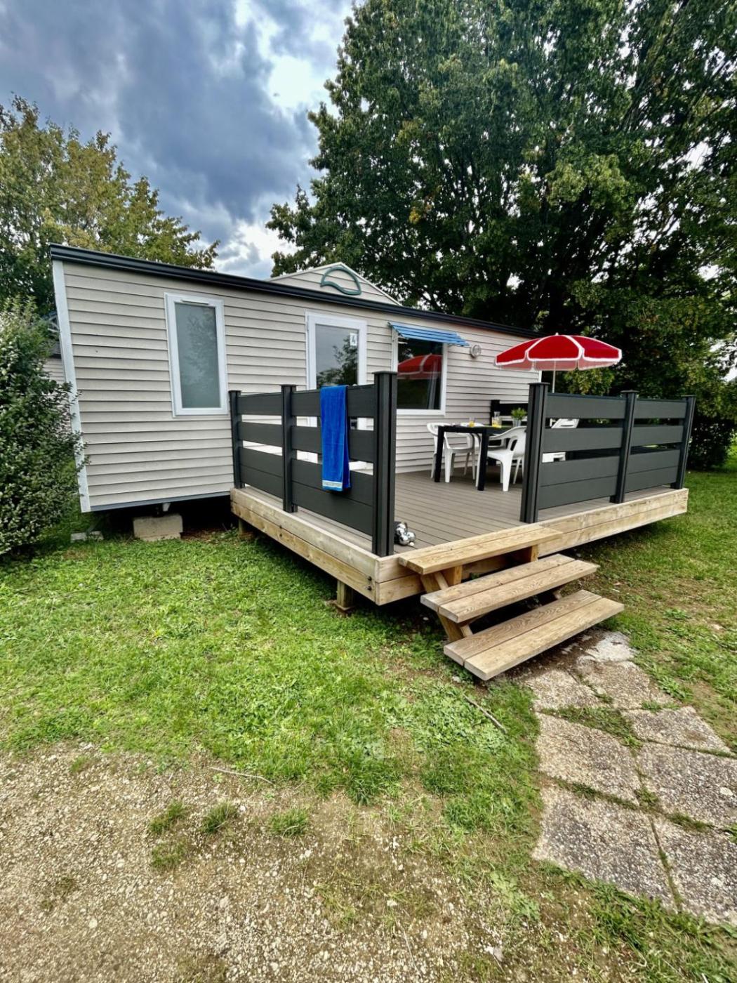 Mobile Home. Boasting a private entrance, this mobile home includes 1 living room, 2 separate bedrooms and 1 bathroom with a shower. Guests will find a stovetop, a refrigerator, kitchenware and a microwave in the well-fitted kitchen. The mobile home also features a barbecue. Featuring a terrace with garden views, this mobile home also offers a tea and coffee maker and a flat-screen TV. The unit has 4 beds.
