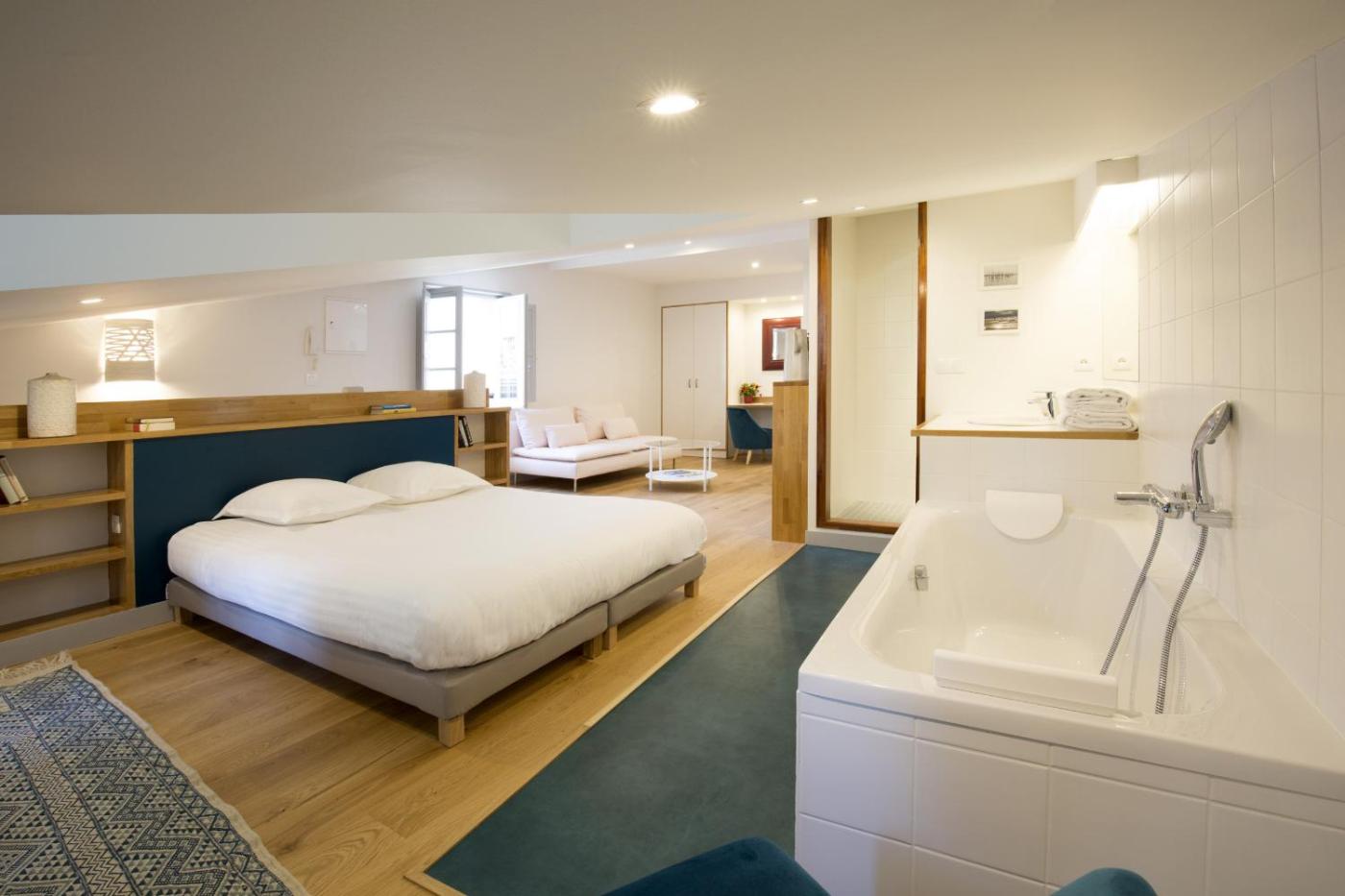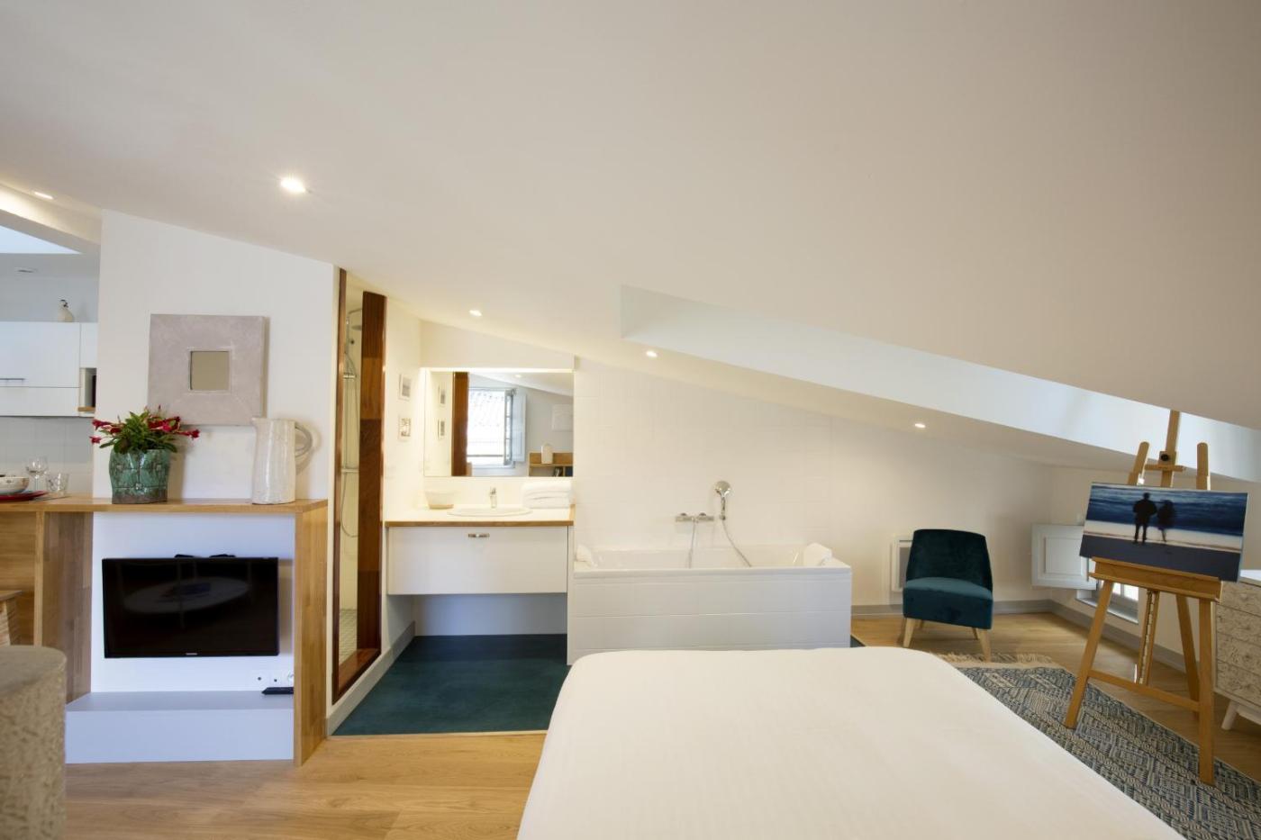 Deluxe Studio. The studio offers a washing machine, a tea and coffee maker, as well as a private bathroom boasting a bath and a shower. The well-equipped kitchen has a refrigerator, a dishwasher, kitchenware and a microwave. The studio features parquet floors, a seating area with a flat-screen TV, a wardrobe, a dressing room, as well as a sofa. The unit has 1 bed.