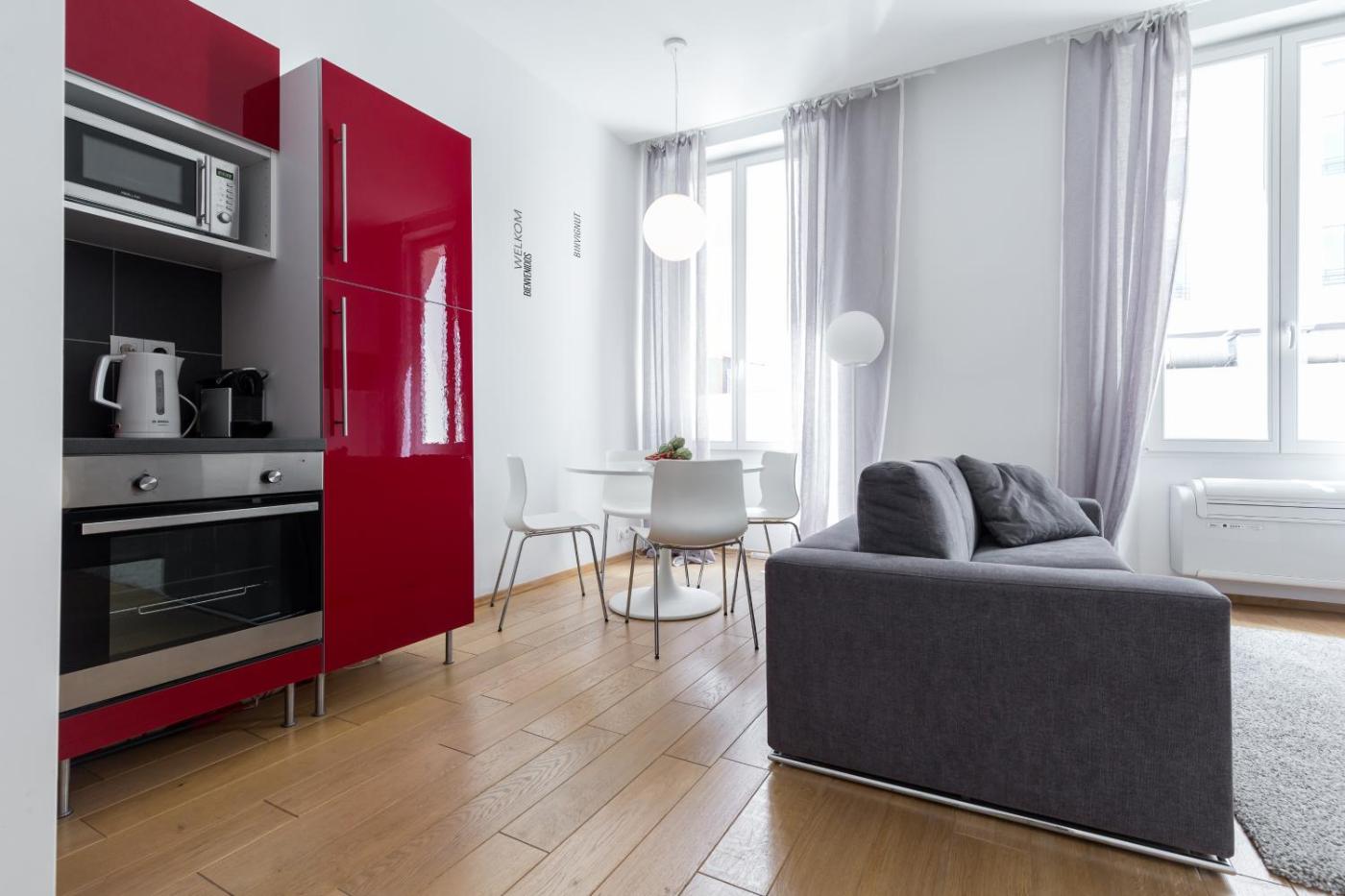 One-Bedroom Apartment. Boasting a private entrance, this air-conditioned apartment features 1 living room, 1 separate bedroom and 1 bathroom with a bath or a shower and a hairdryer. Meals can be prepared in the well-fitted kitchenette, which features a stovetop, a refrigerator, kitchenware and an oven. The apartment features a washing machine, a coffee machine, a seating area, a dining area, as well as a flat-screen TV with satellite channels. The unit has 2 beds.
