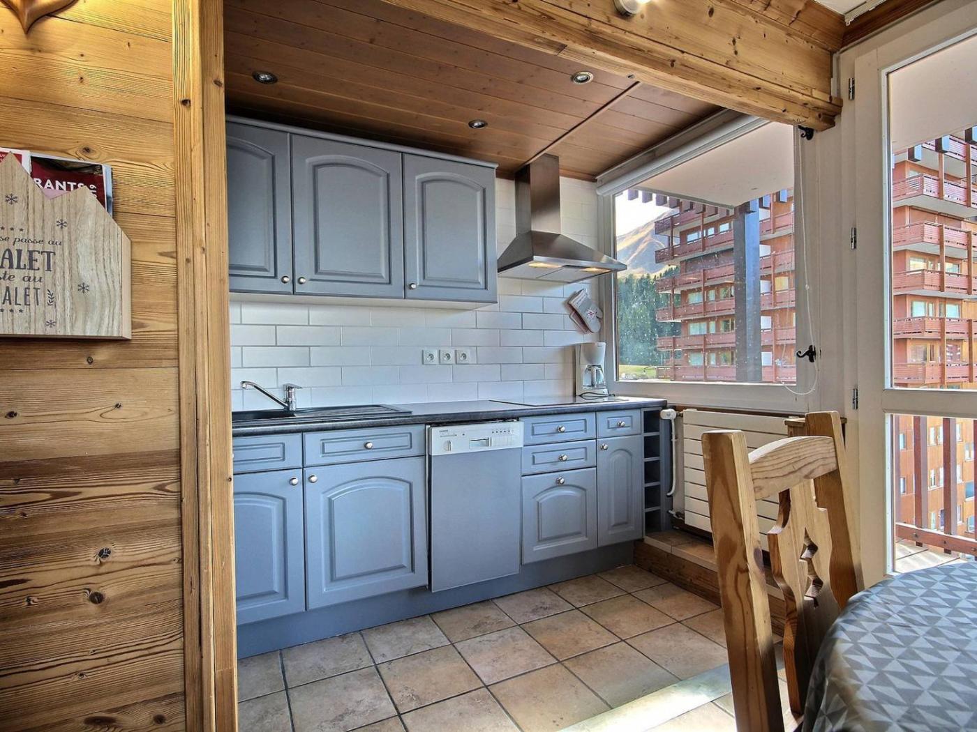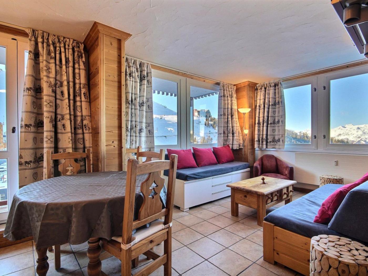 Situated in La Plagne in the Rhône-Alps region, Charmant 3 pièces rénové, au pied des pistes pour 6 pers. - FR-1-455-136 has a balcony. Free WiFi is provided throughout the property.