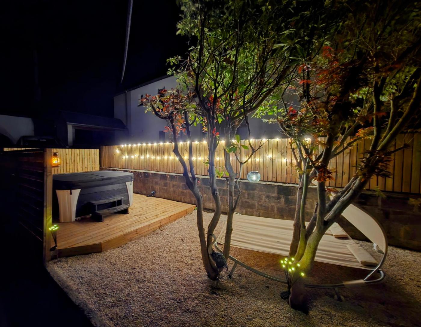One-Bedroom House. This holiday homes special feature is the hot tub. Featuring a private entrance, this holiday home consists of 1 living room, 1 separate bedroom and 1 bathroom with a shower and a hairdryer. Guests will find a stovetop, a refrigerator, kitchenware and an oven in the fully equipped kitchen. The holiday home also offers a barbecue. The holiday home provides a flat-screen TV, a washing machine, a coffee machine, a seating area as well as garden views. The unit offers 2 beds.