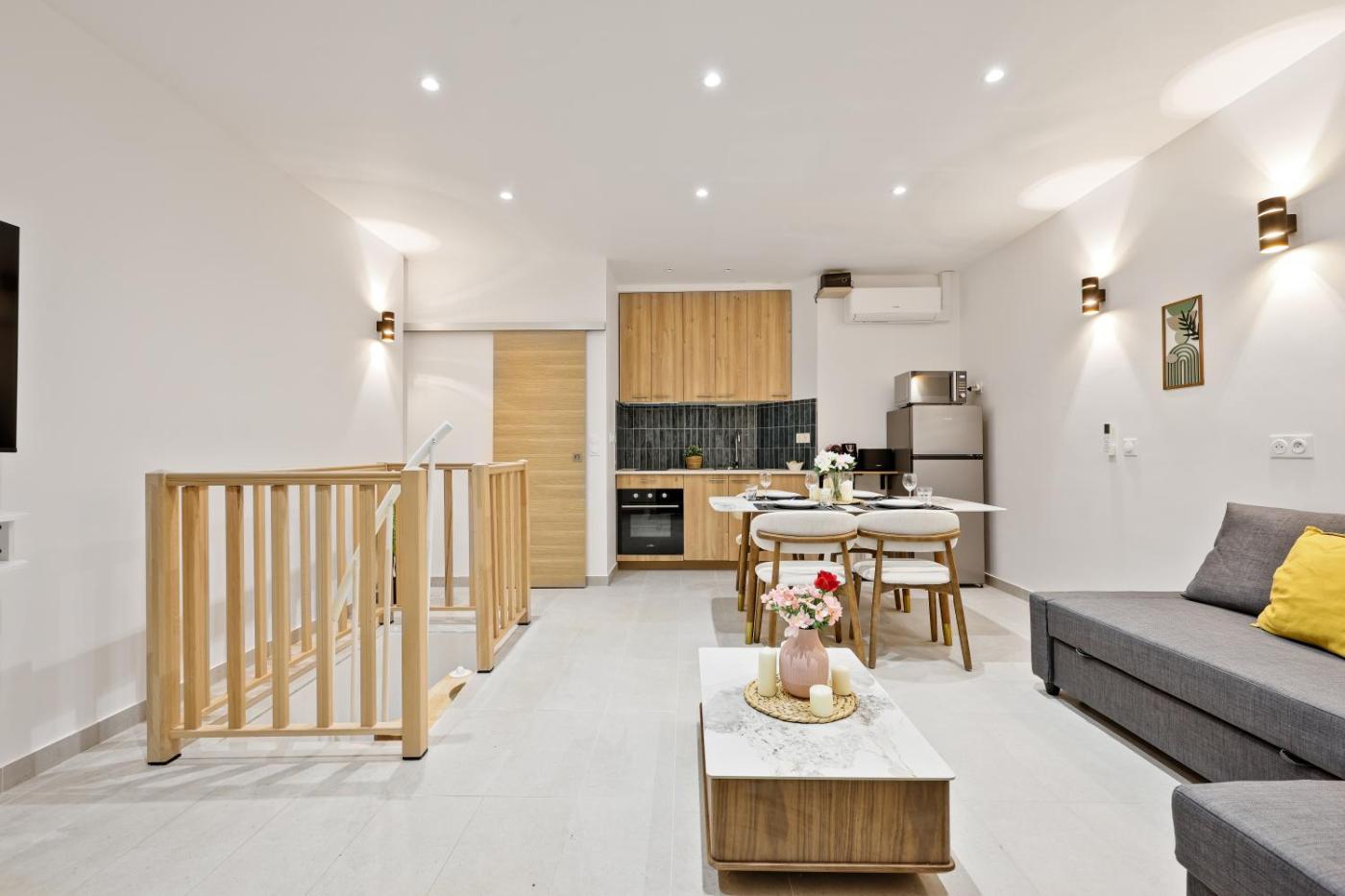 Two-Bedroom Deluxe Apartment. This spacious apartment consists of 1 living room, 2 separate bedrooms and 1 bathroom with a shower and free toiletries. The fully equipped kitchen has a stovetop, a refrigerator, kitchenware and an oven. The apartment features tiled floors, a seating area with a flat-screen TV with streaming services, a washing machine, soundproof walls, as well as a tea and coffee maker. The unit offers 4 beds.
