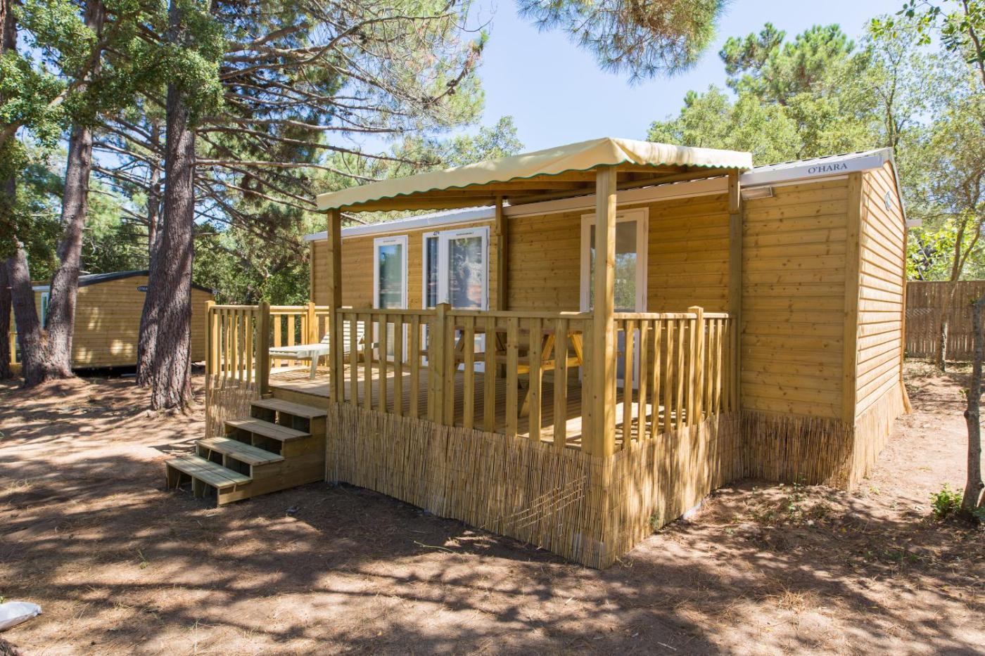The air-conditioned mobile homes feature a seating area and a terrace. There is a fully equipped kitchen with a microwave and a refrigerator. The private bathroom has a shower.