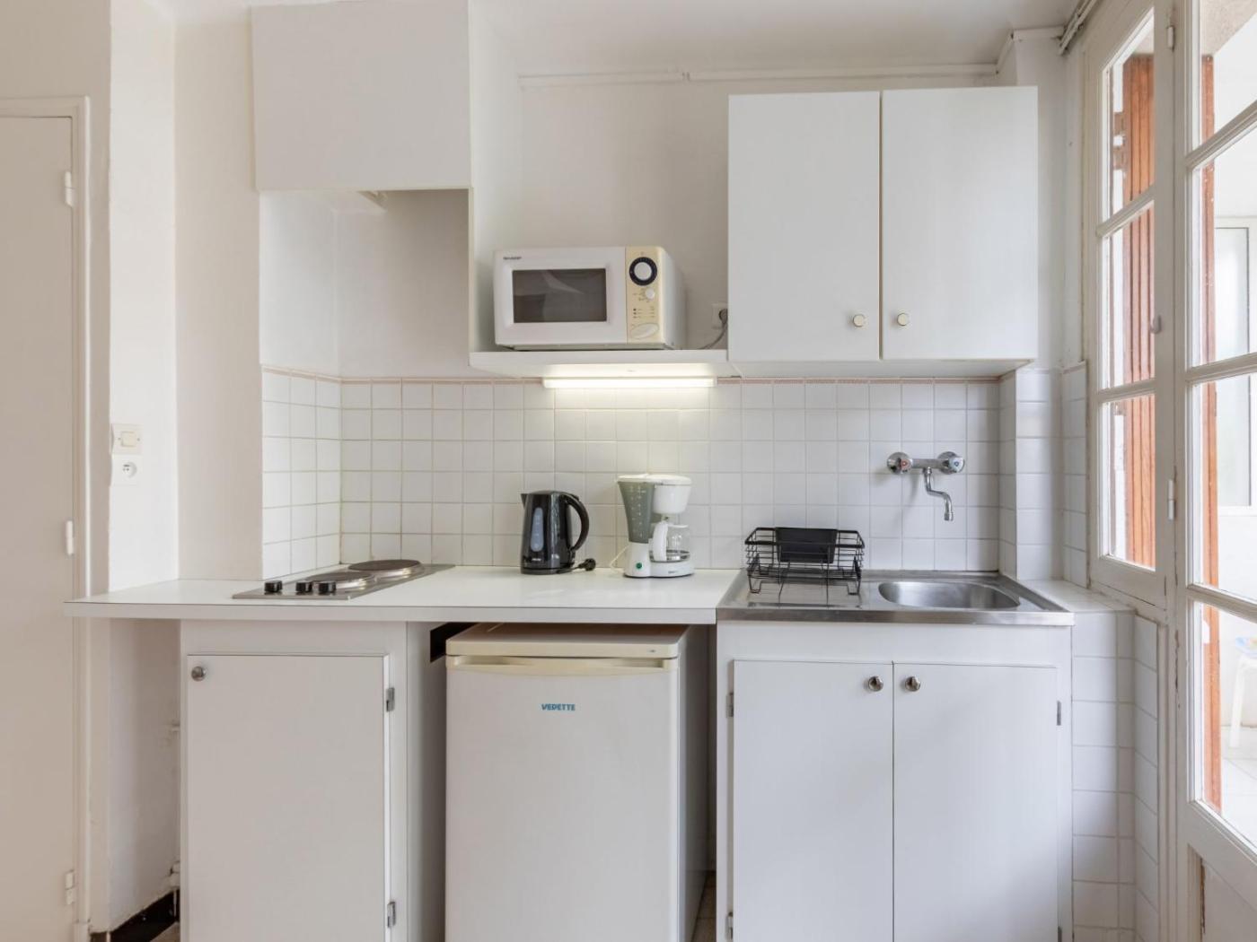 Apartment. This apartment comes with 1 living room, 1 separate bedroom and 1 bathroom with a shower. The well-equipped kitchenette has a stovetop, a refrigerator, kitchenware and a microwave. Boasting a terrace, this apartment also features a coffee machine, a dining area and a TV. The unit has 2 beds.