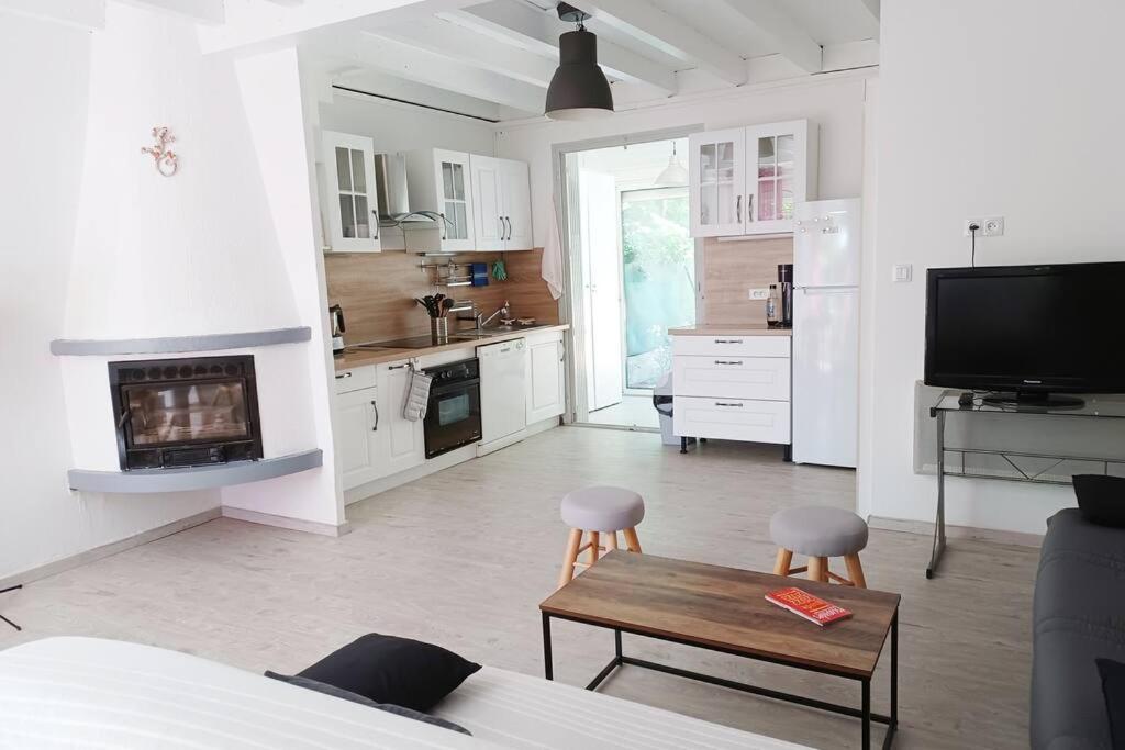 The villa with a terrace and garden views has 3 bedrooms, a living room, a flat-screen TV, an equipped kitchen with a dishwasher and an oven, and 1 bathroom with a shower. The accommodation offers a fireplace.