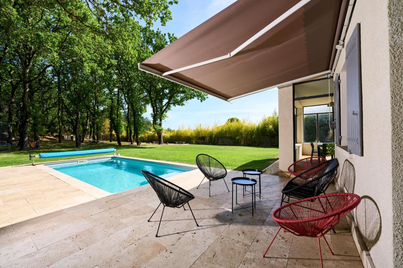 Three-Bedroom House. The private pool is the standout feature of this holiday home. Boasting a private entrance, this air-conditioned holiday home features 1 living room, 3 separate bedrooms and 2 bathrooms with a shower. Guests will find a stovetop, a refrigerator, a dishwasher and kitchenware in the fully equipped kitchen. The holiday home also comes with a barbecue. Featuring a terrace with garden views, this holiday home also features a washing machine and a flat-screen TV. The unit has 5 beds.